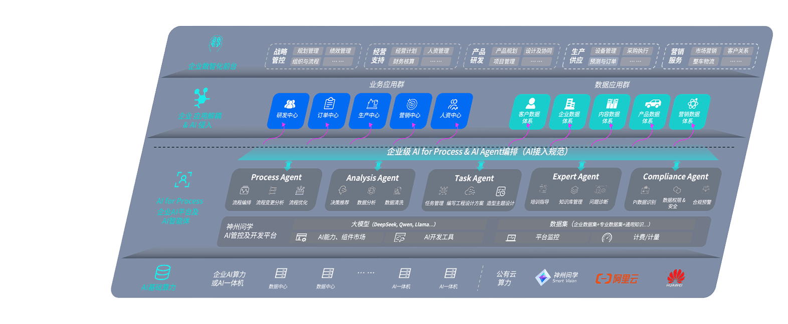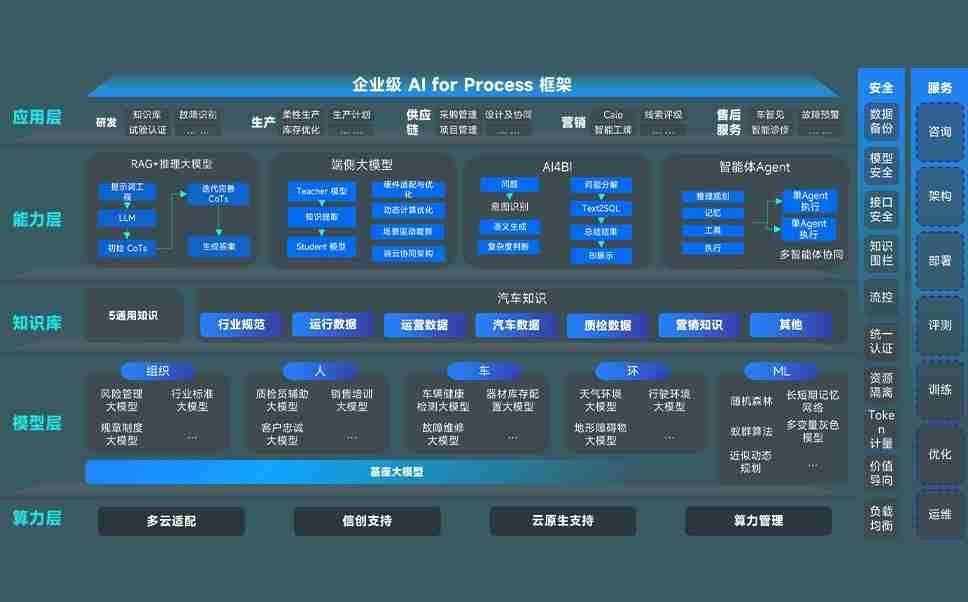 抢庄牛牛问学智车解决方案是一套基于AI技术的汽车行业智能化系统,,覆盖从底层算力到顶层AI应用的全栈方案。。方案由算力层、、模型层和应用层组成:算力层,,方案支持多种一体机配置,,具备云端灵活部署、、、、多云适配以及动态优化计算资源的能力;模型层,,抢庄牛牛问学平台版提供了企业级AI应用一站式构建与管理平台,,,支持基于后训练强化技术的汽车企业专属模型的训练、、评测和运营;应用层,,,抢庄牛牛问学DeepSeek版提供包括超级员工、、、、智能招采、、、、智能营销、、智能客服、、AI for BI等一系列解决方案,,可助力汽车行业实现数字化转型,,,,让管理更智能、、、响应更敏捷。。