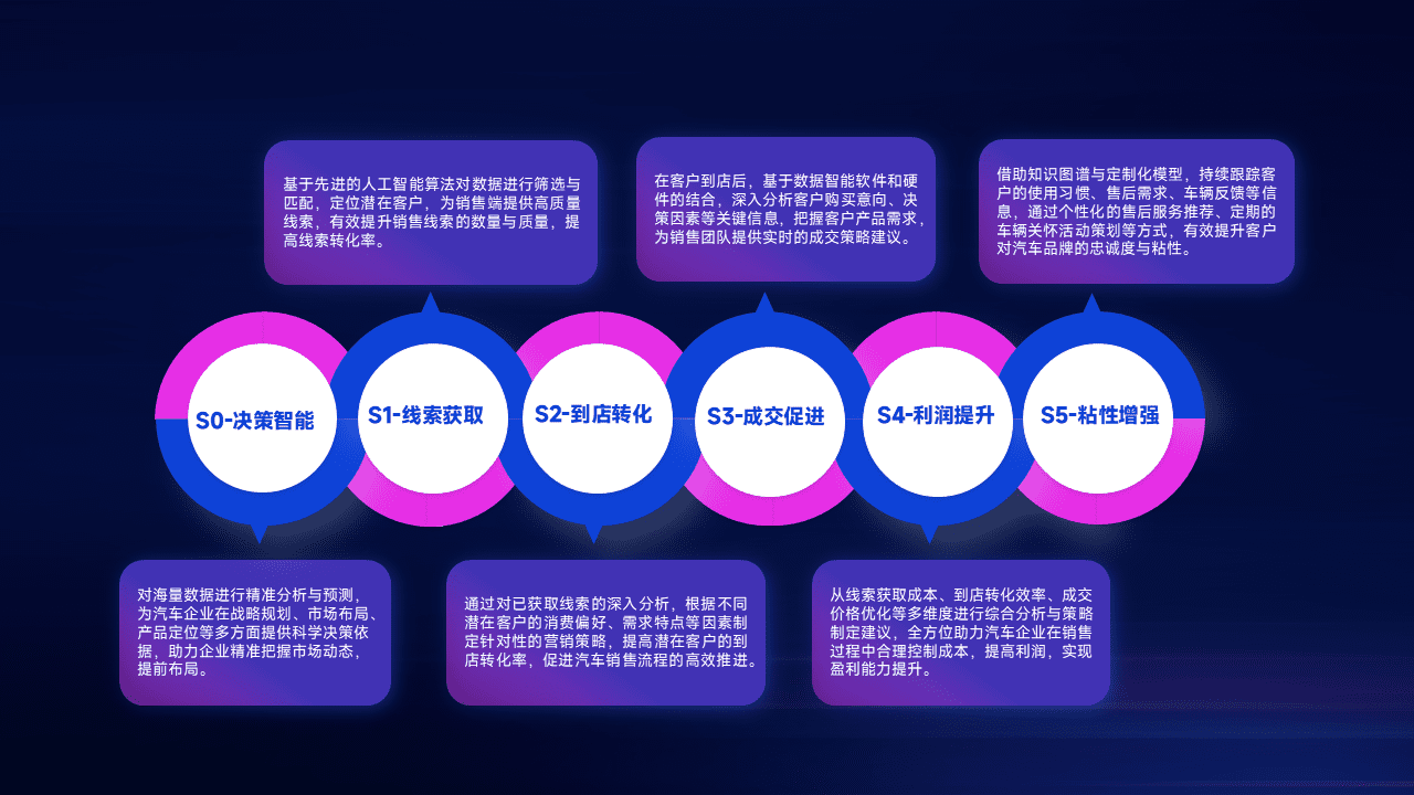 通过拓宽潜在客户来源、、、优化线索分配并提高到店转化率,,,,以增强销售效率。。。同时,,,利用线索数据不断优化分析模型,,,,有效提升转化率,,,扩大营销影响力。。。